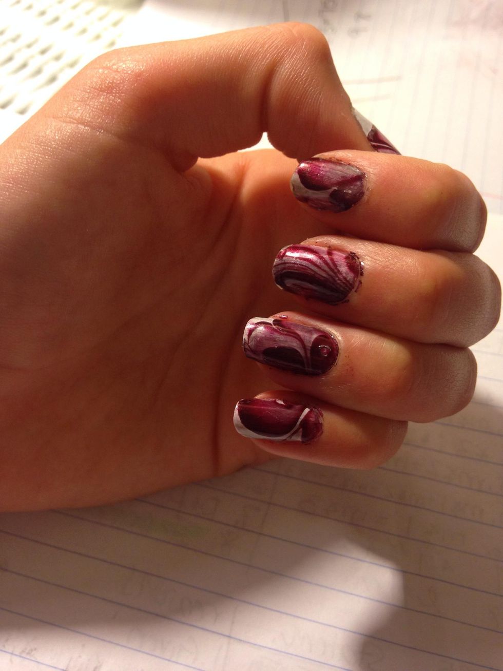 I took my finger and put it into the polish where I wanted the design to stick. To remove the excess polish (not pictured) but I used cotton balls and cotton swabs to clean up the mess around my nails