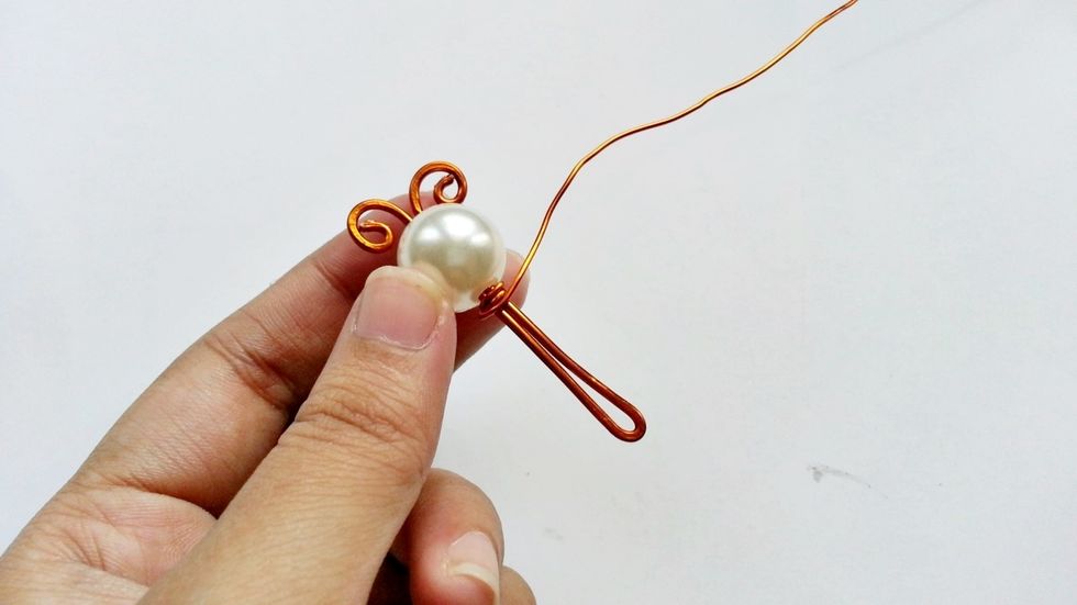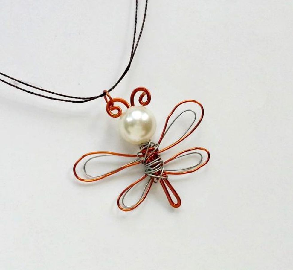 One by one make the 4 wings of the dragonfly, creating the upper wings first and then the lower wings. Wrap the remaining wire around the body part.