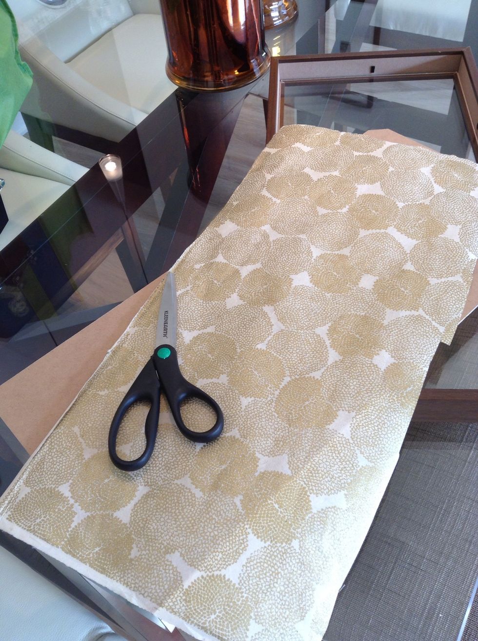 Use the panel as the template to cut your paper. Make sure to leave about a half an inch of paper on all sides.