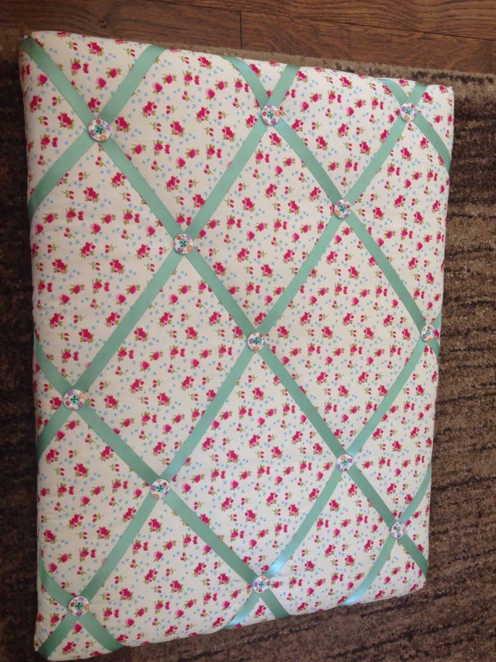 Start by measuring the centre ribbon diagonally across the bulletin board.