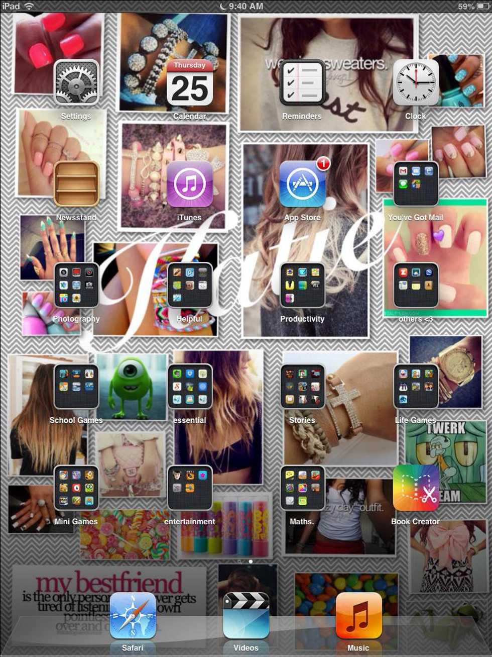 Step 4 - Paste pictures from google, preferably of makeup, clothing, nails, jewellery or other things your like. Assort them into different sizes and shapes.