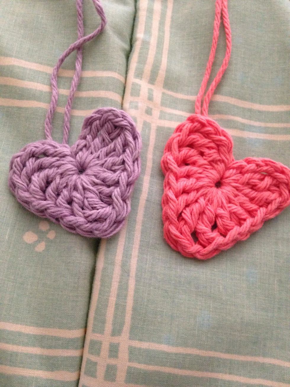 Small simple crochet hearts! I found the pattern on this blog: http://www.belleamour.co.uk/2011/03/crocheted-love/ Here's my snap guide for it!