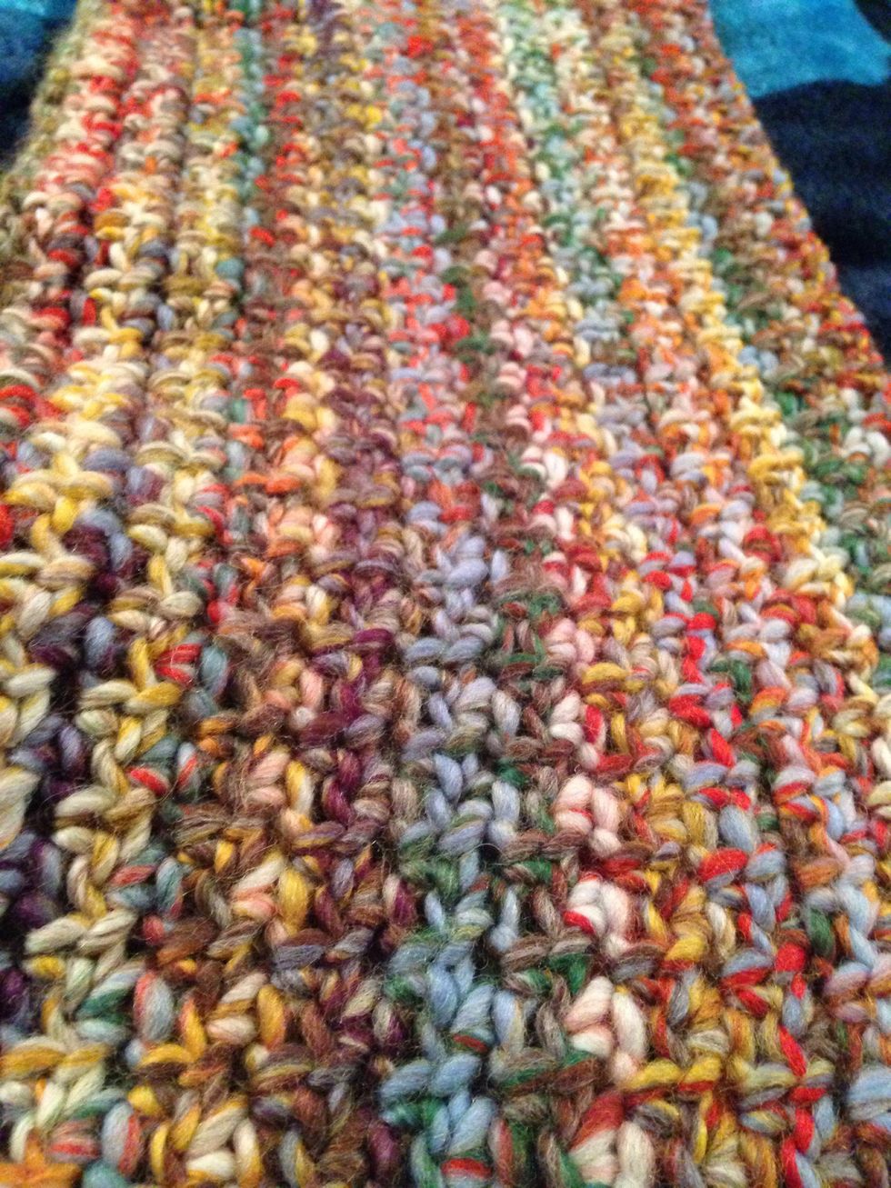 I used some leftover yarn from my scarf...in this case Patons Colorwul yarn with a size J crochet hook.