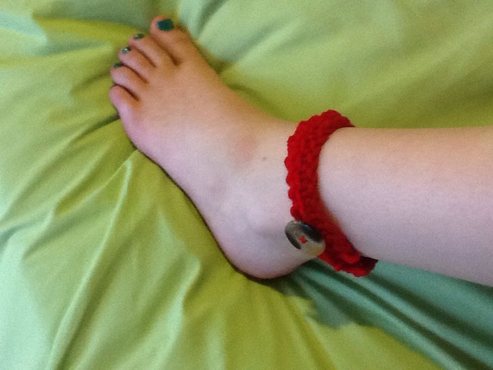 Make a chain that fits loosely around your wrist (or ankle which ever one is easiest)