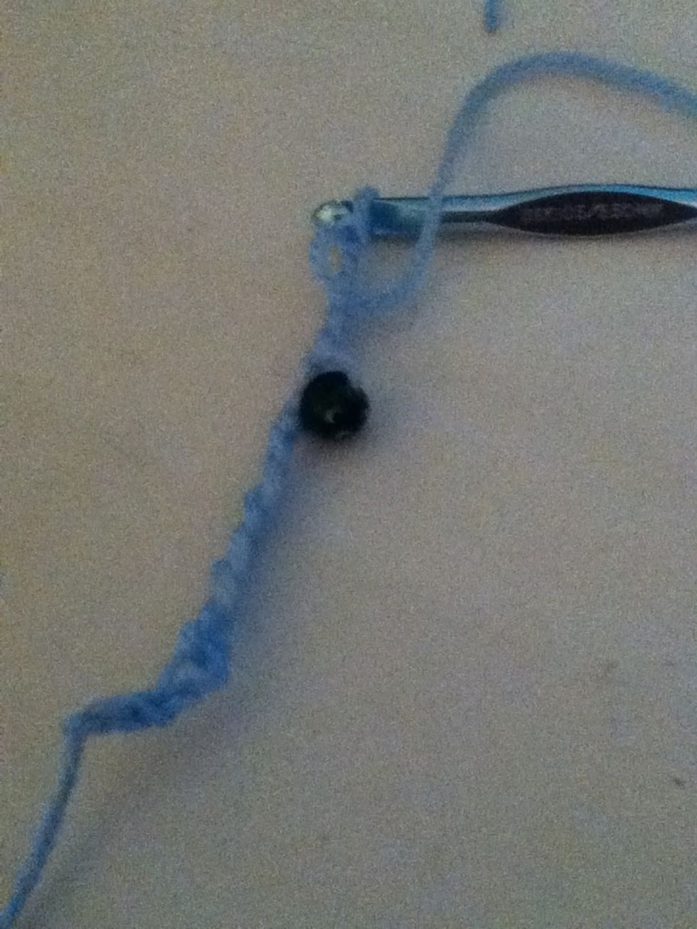 Pull the bottom yarn over the bead