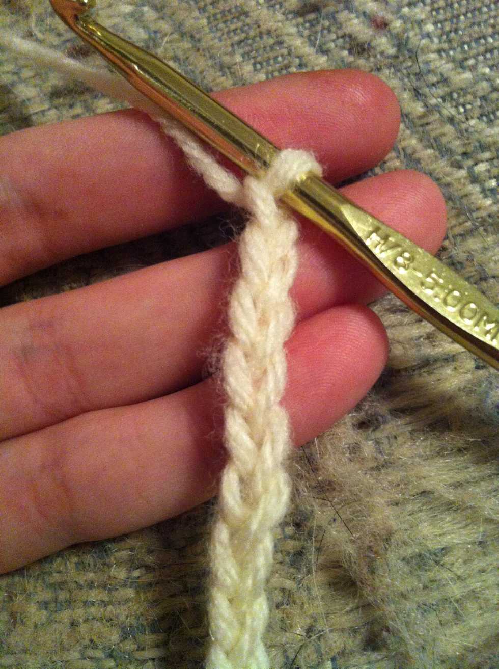 with your hook you go under and behind your yarn. wrapping the yarn around your hook (once!).