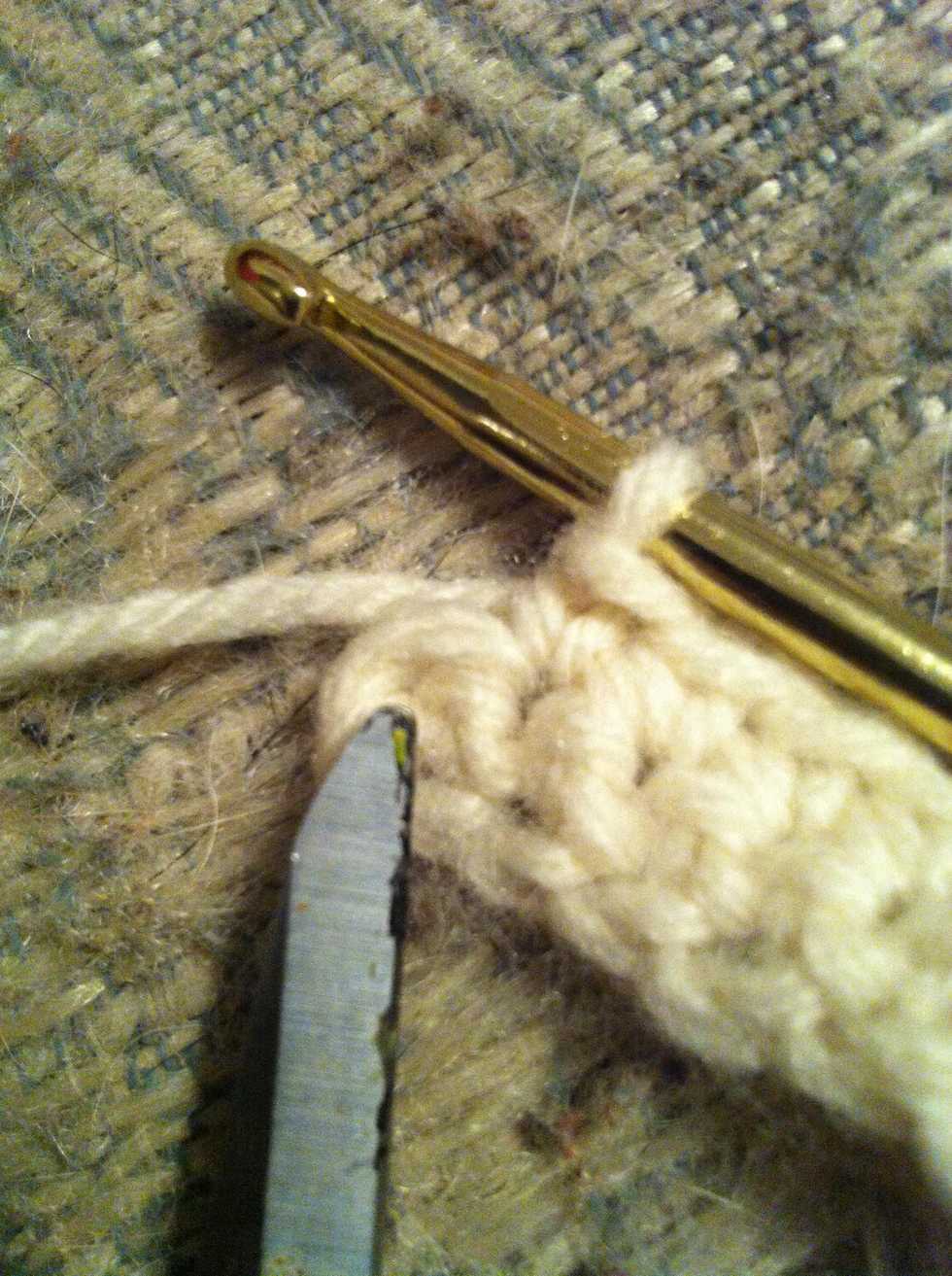 for the next stitch you're going to insert your hook in the next hole of your foundation chain (where the siccors are pointing at)