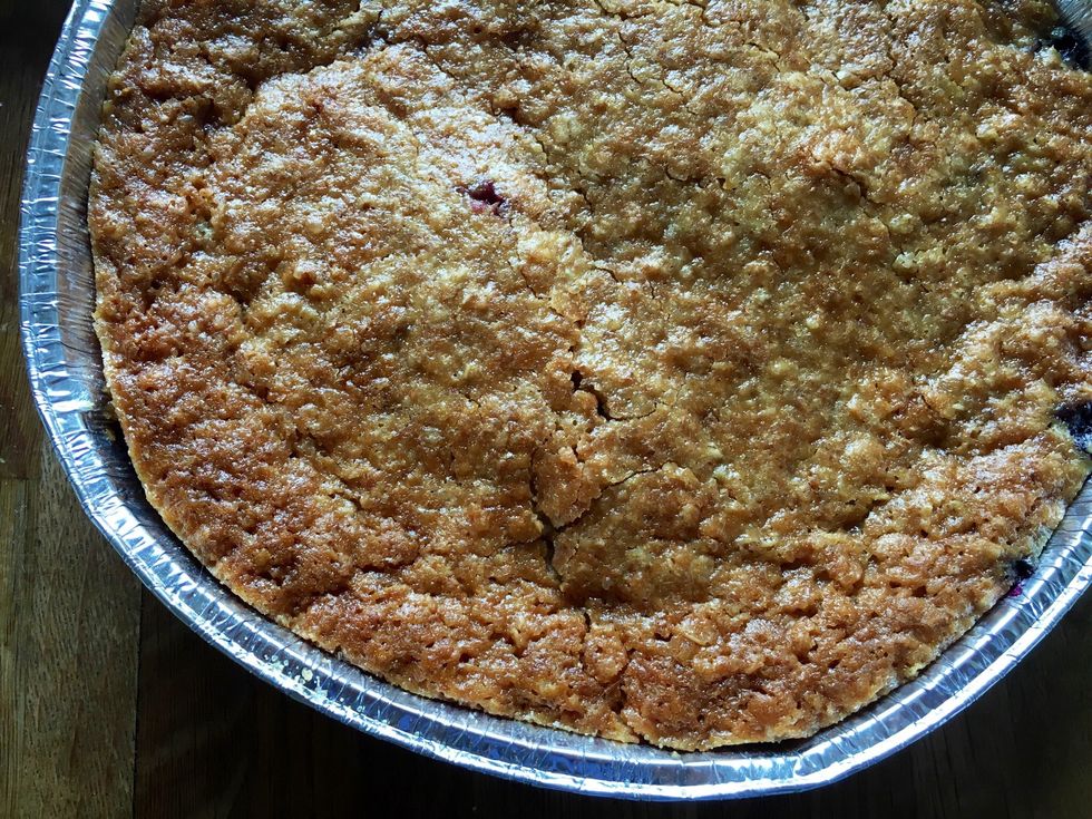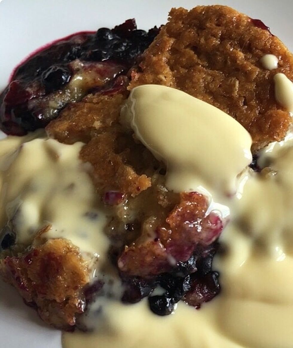Cover the berries with the batter. Bake for 30-40 min. depending on the oven and how crunchy you want it.