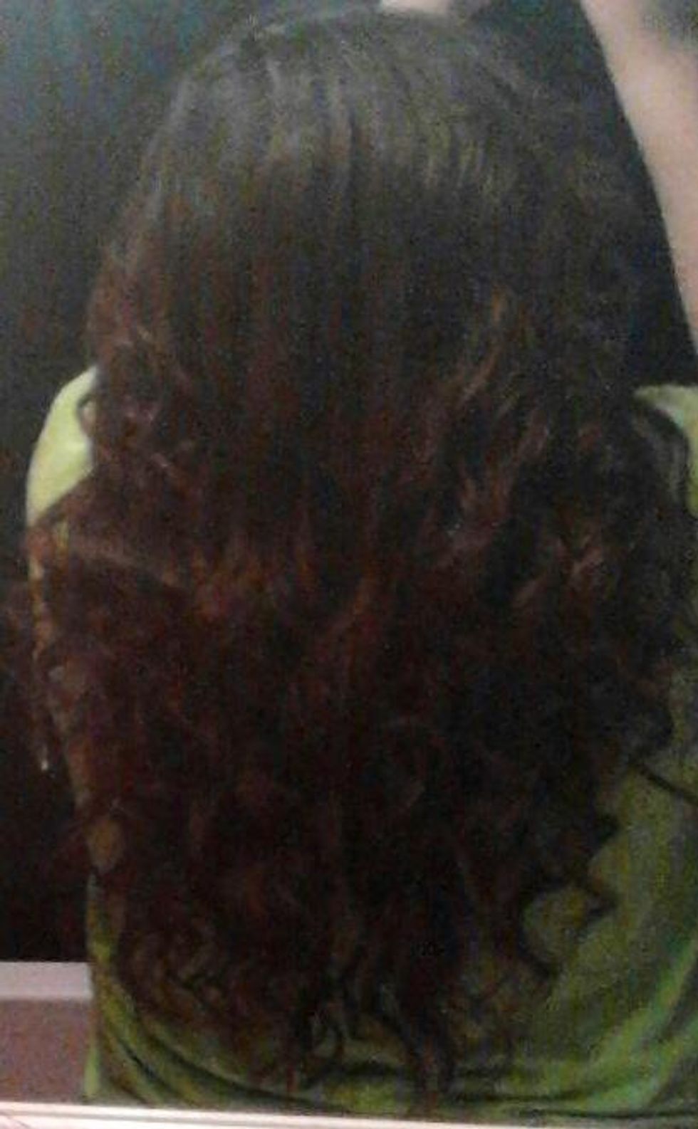 Flip your hair back over, giving a last spritz. You can fix any curls you need to and style your hair as desired and voila. Curling wand curled hair.(:
