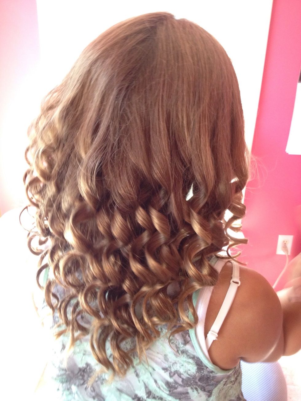 Then you untie and brush out the other bottom section. Be careful not to brush the already curled pieces of hair!