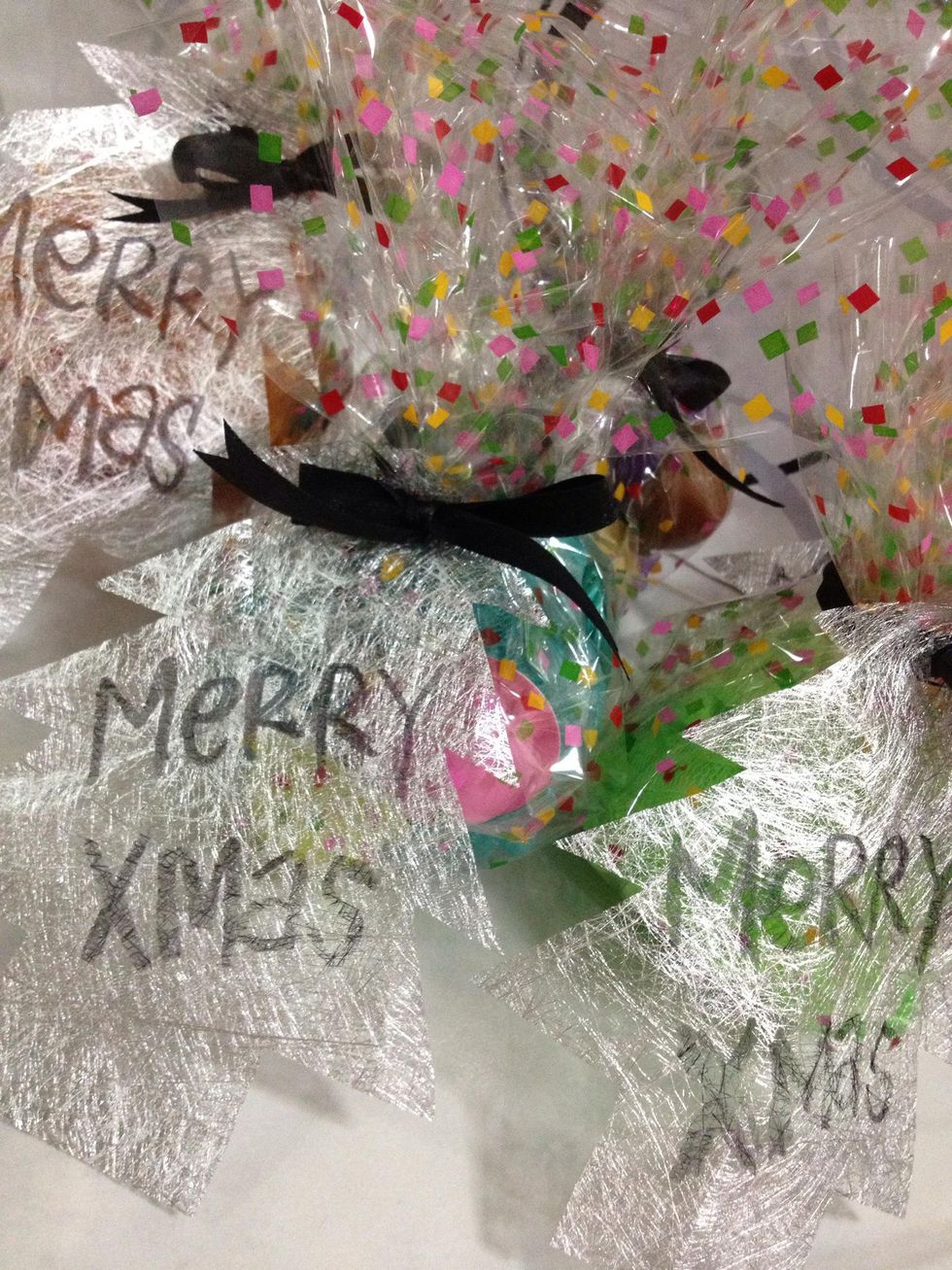 Slash bit by bit the plastic wrapping from top to create the volume, slash it irregularly