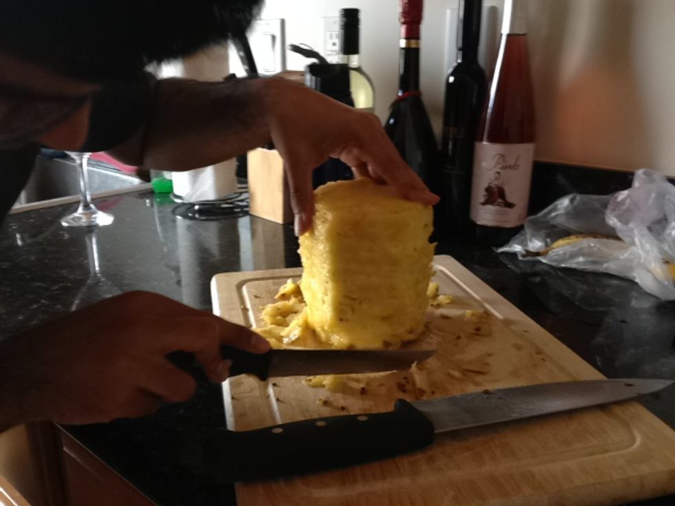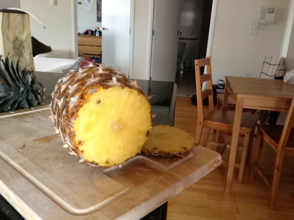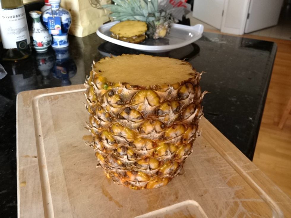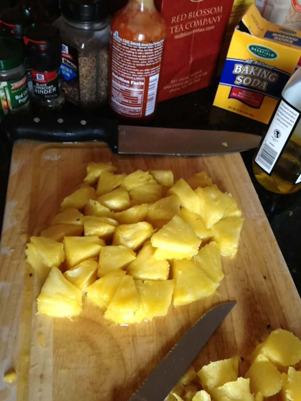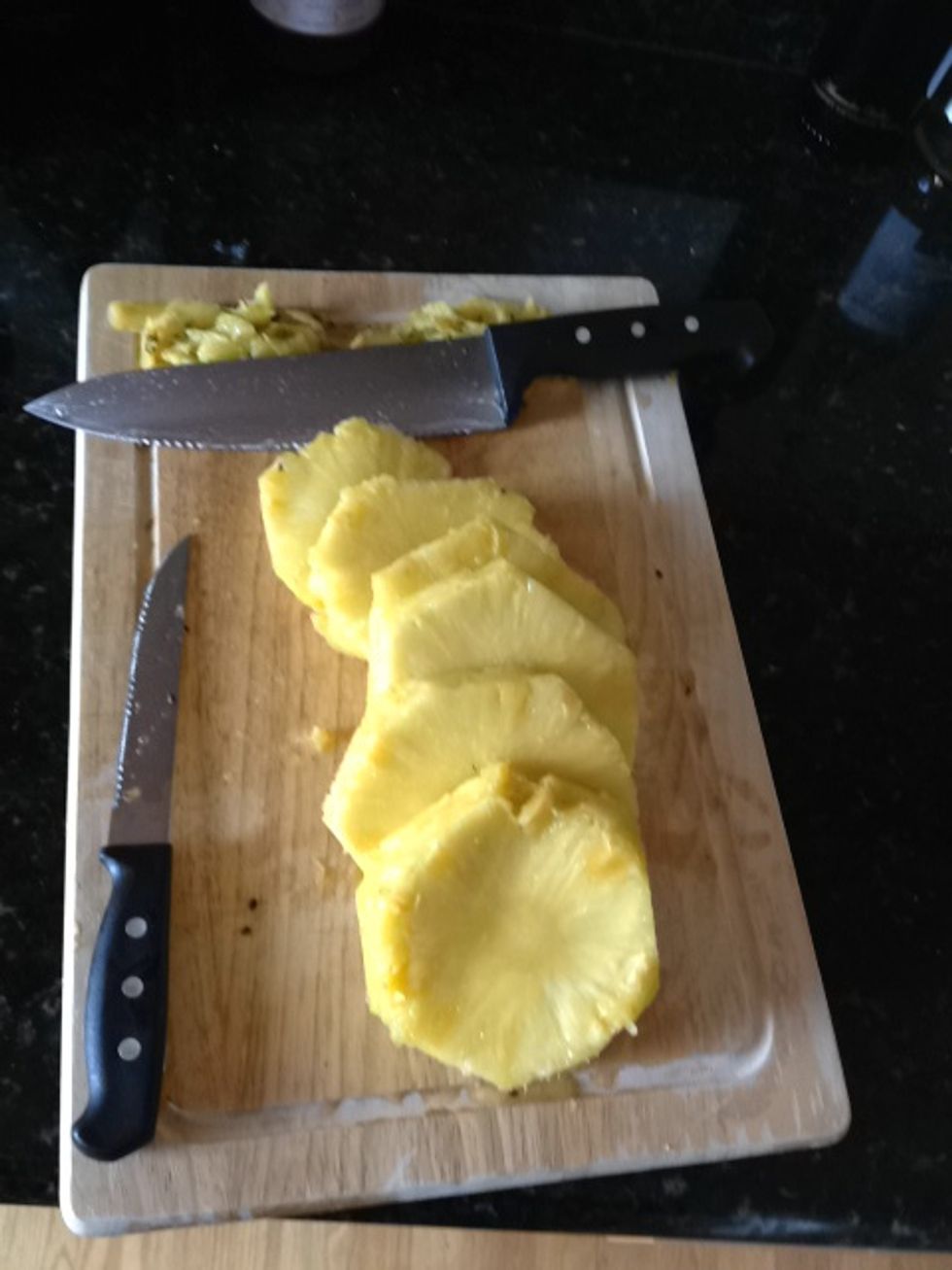 Place in a bowl and let the sliced pineapple chill in the fridge.