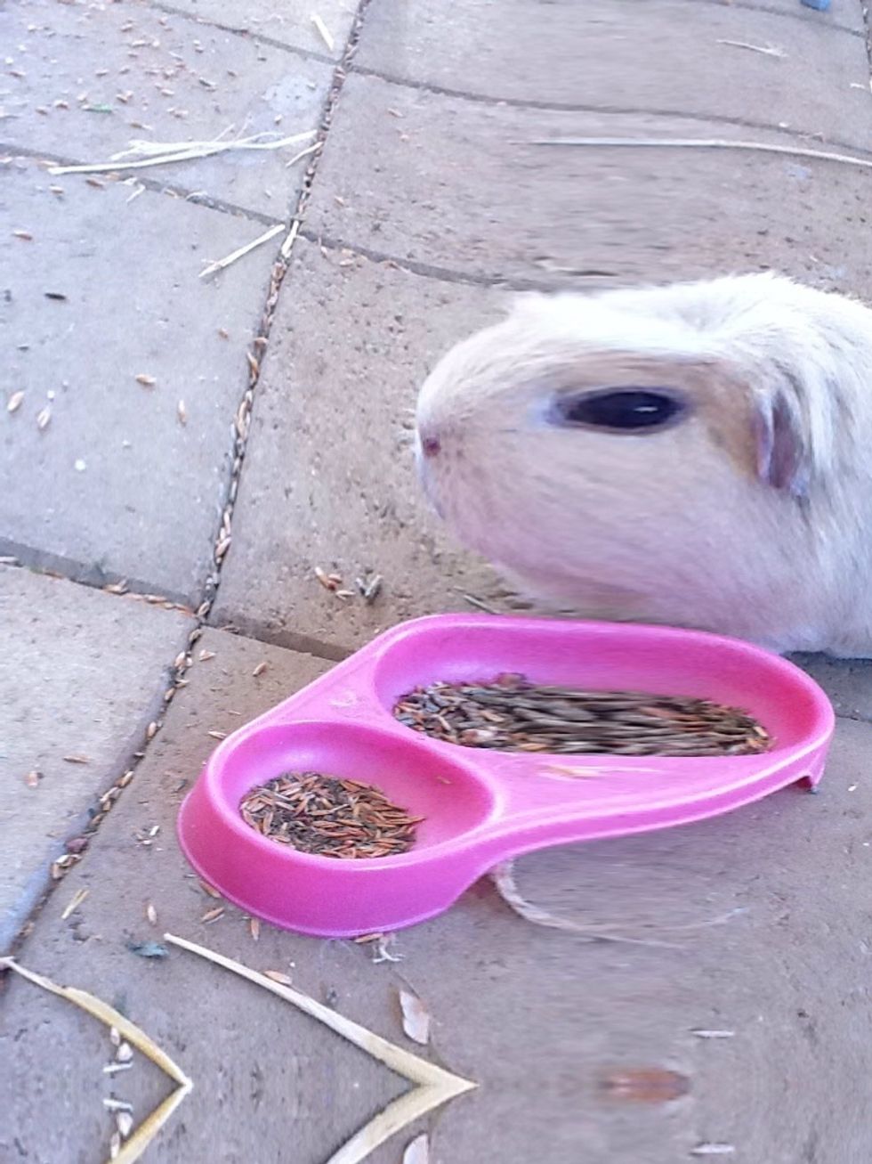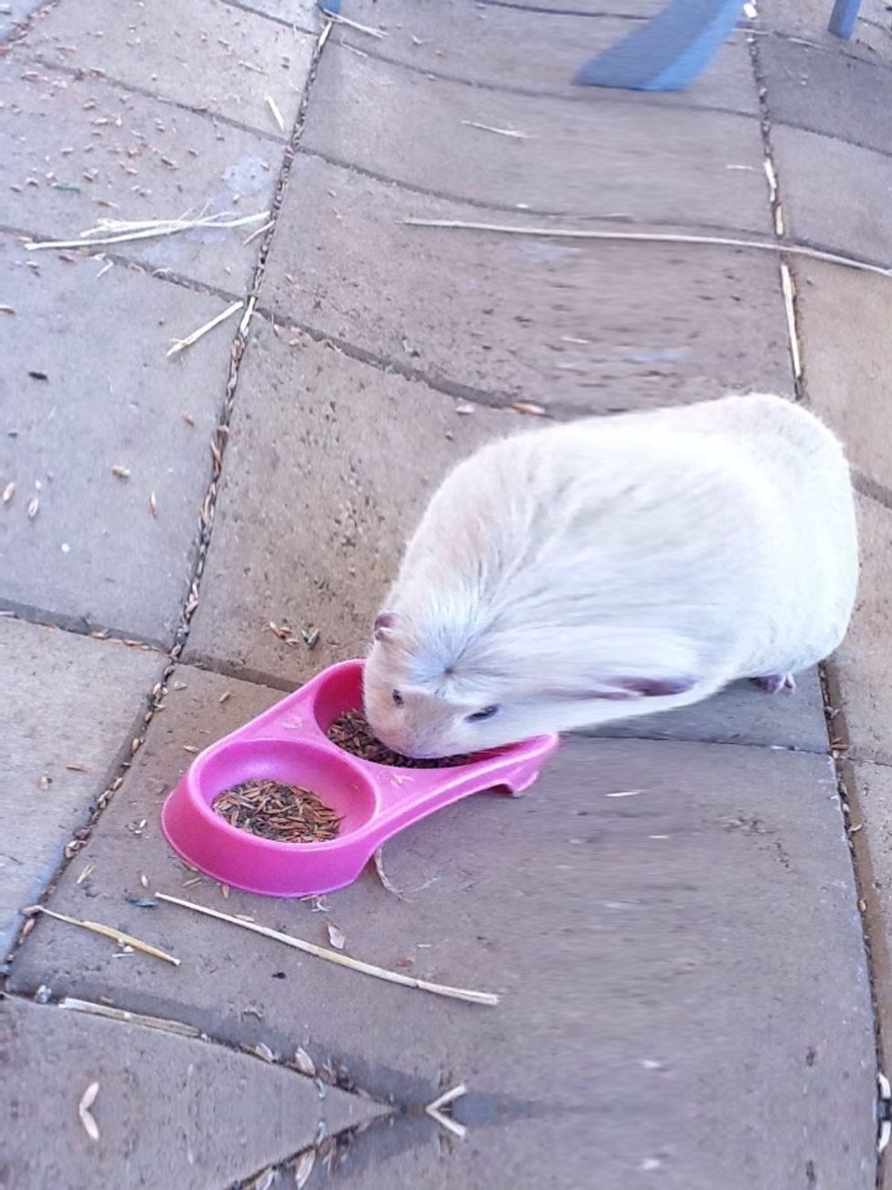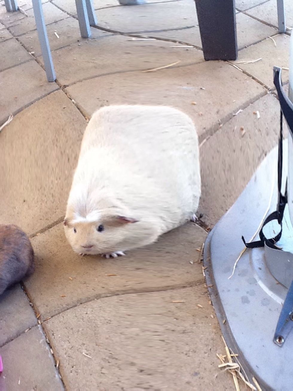 White guinepig, scamper, male, 6. Black, white and rust guinepig, Lily Evans, 2. Brown geneipig, tufty royal, 3.