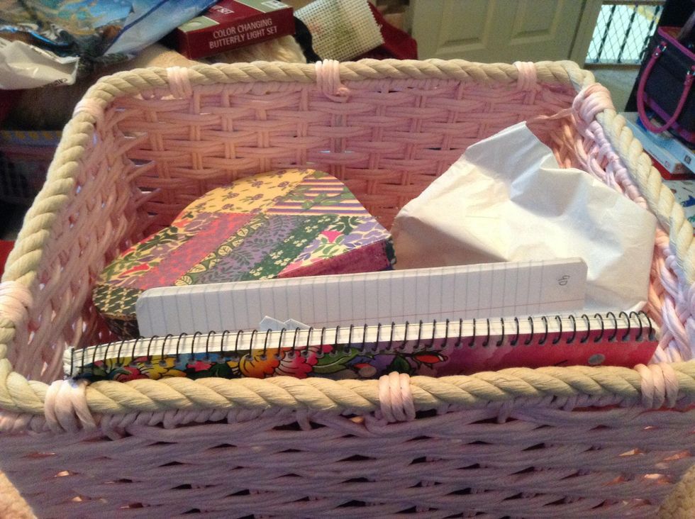 Since my keep basket is also my current projects basket, I will have a pile of stuff to keep that doesn't go in it. You may use a basket if you like.