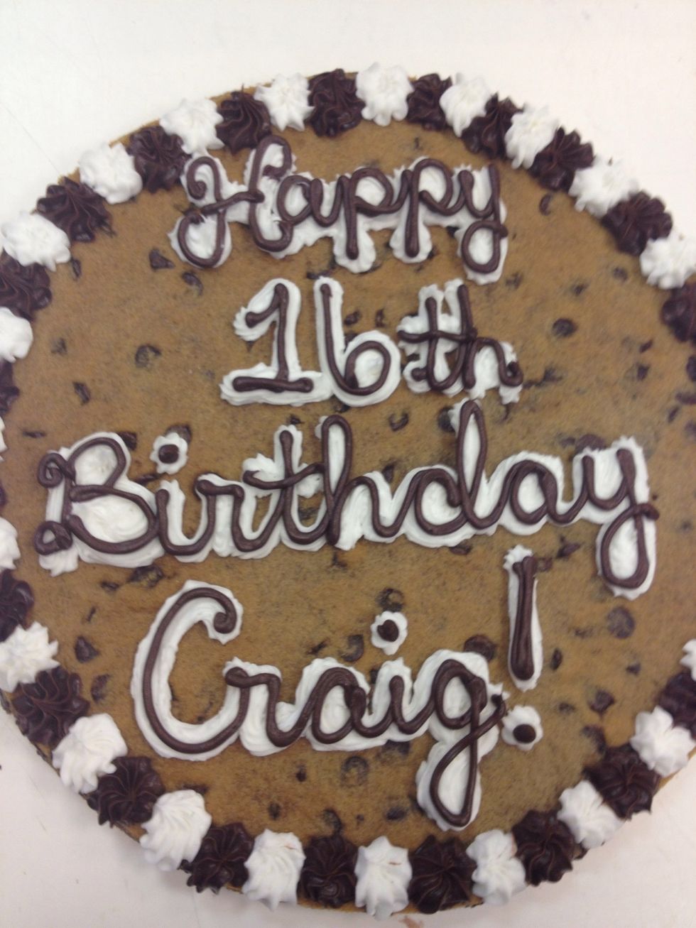 Start by using the blank cookie cake. This one photographed is chocolate chip.