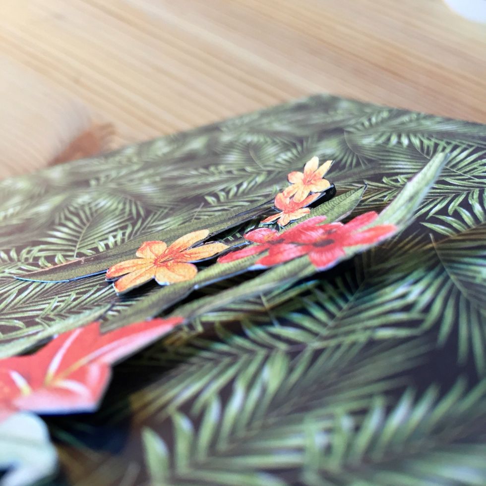 Glue two leaves on left corner.