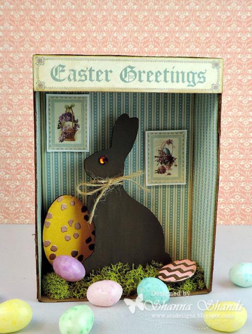 Paint the pieces the colors you want. I went for a chocolate bunny and bright colored eggs.