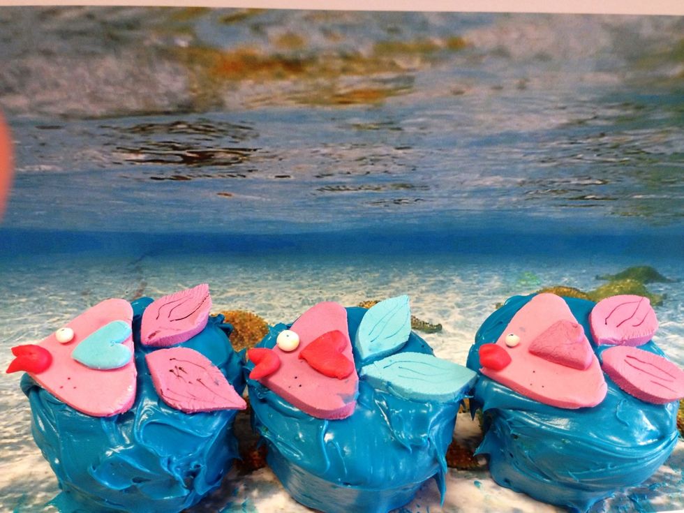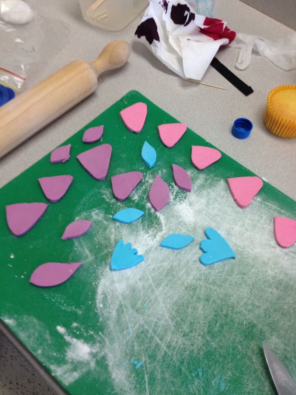 Assemble the fondant shapes on top of the cupcakes, make the lips out of extra fondant with more dye