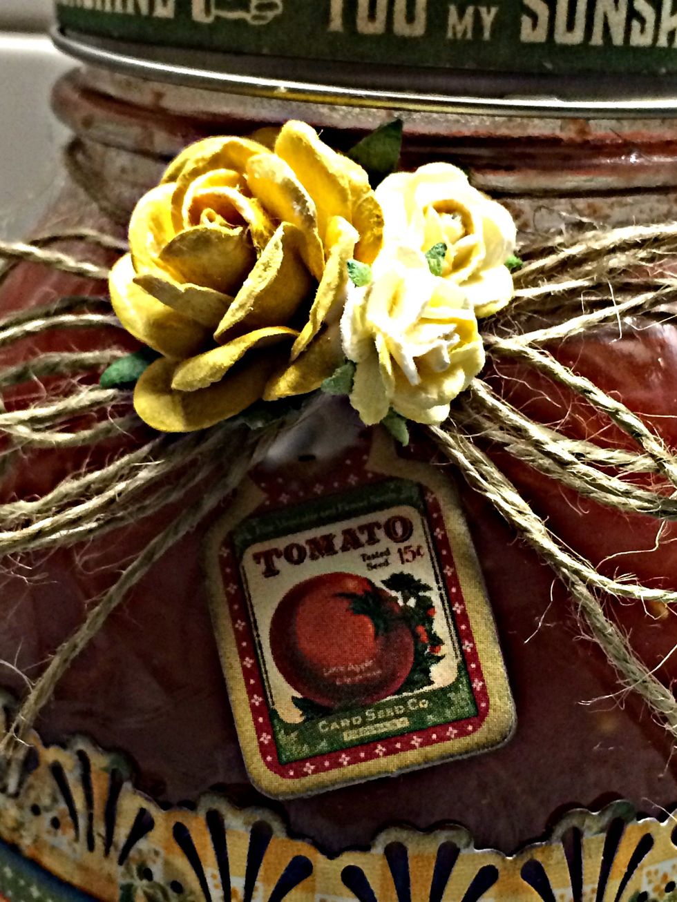 I added twine and flowers to the top of the jar.