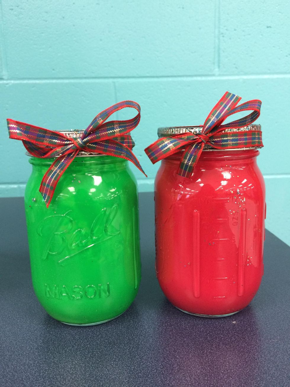 Pour paint into the jar. Shake jar until it is fully covered inside.