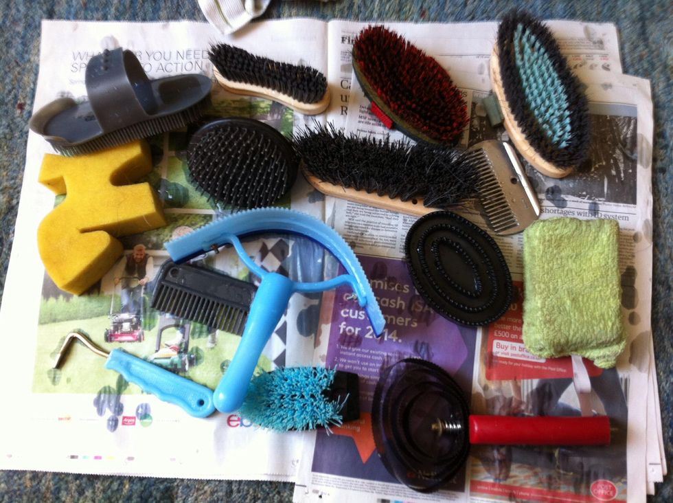 Leave to dry overnight and put them away in the morning. It is a good idea to wash brushes regularly and do it well, for your horse and your comfort when grooming.