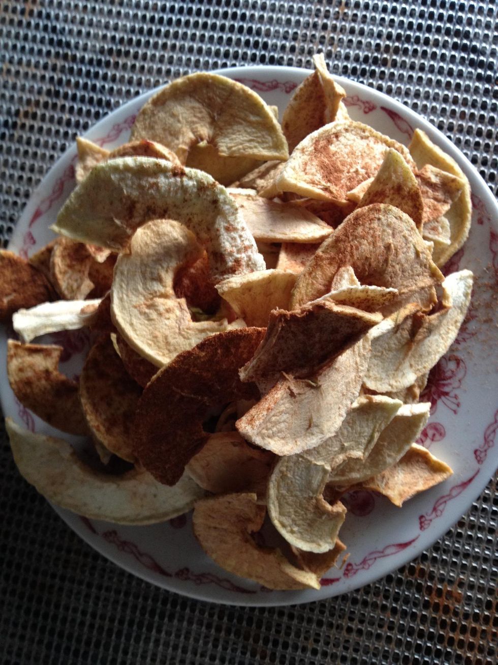 Here are the same apples from yesterday's guide. The raw, sliced apple weighed 6 oz. The dried one is 0.8 oz. The dried apples have the addition of cinnamon. So, what do you think