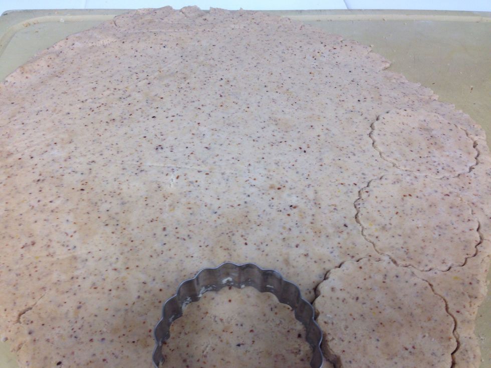 Cut out Linzer shaped cookies and place on a parchment lined sheet tray.