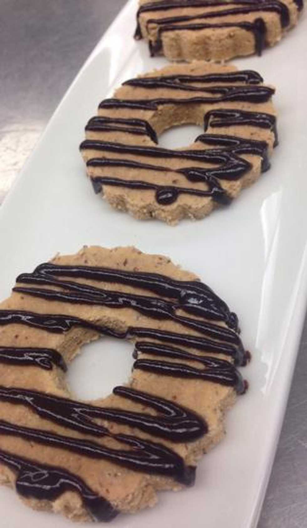 Glaze with vegan chocolate or sandwich with dehydrated jam.