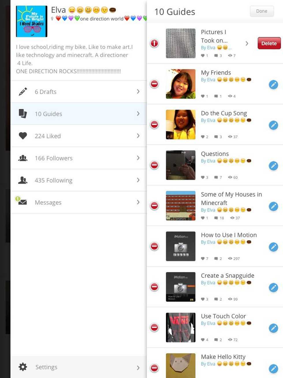 First go to your profileThen you are going to press on guidesThen press editThen minis signs will be next to your guidesThen press the minis and then a delete sign will pop up press it and done