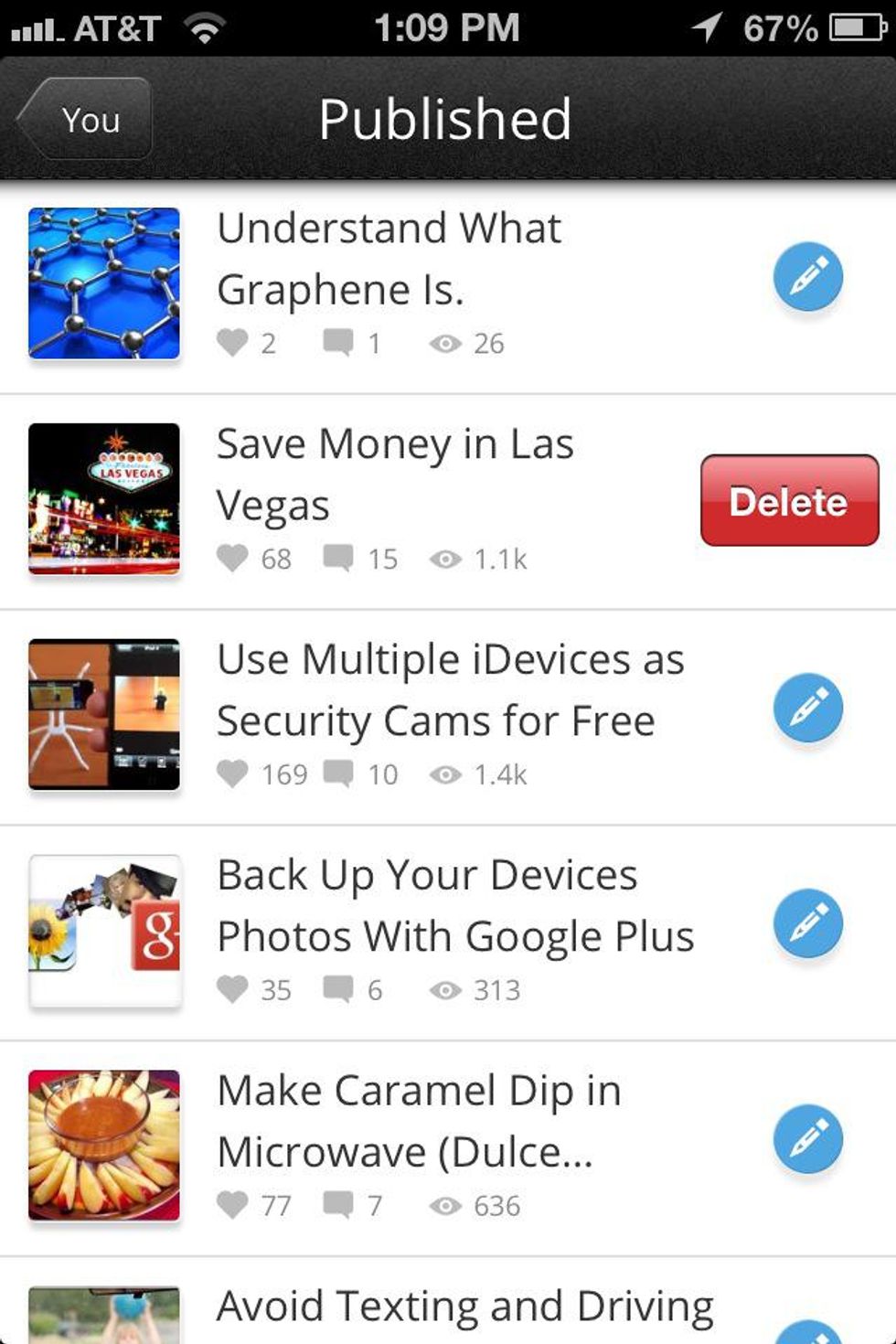 Go to your profile (top of main menu).Find the guide you want to delete.Left swipe the guide you want to delete. The delete button will appear. Tap the delete button to delete it.