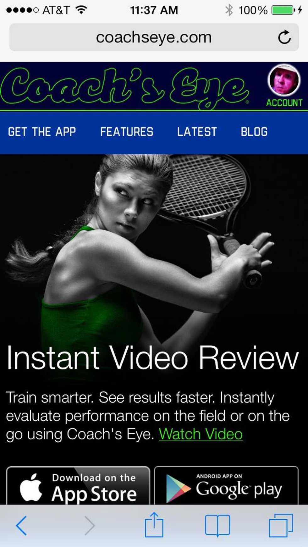 Tap the Account button and login to coachseye.com