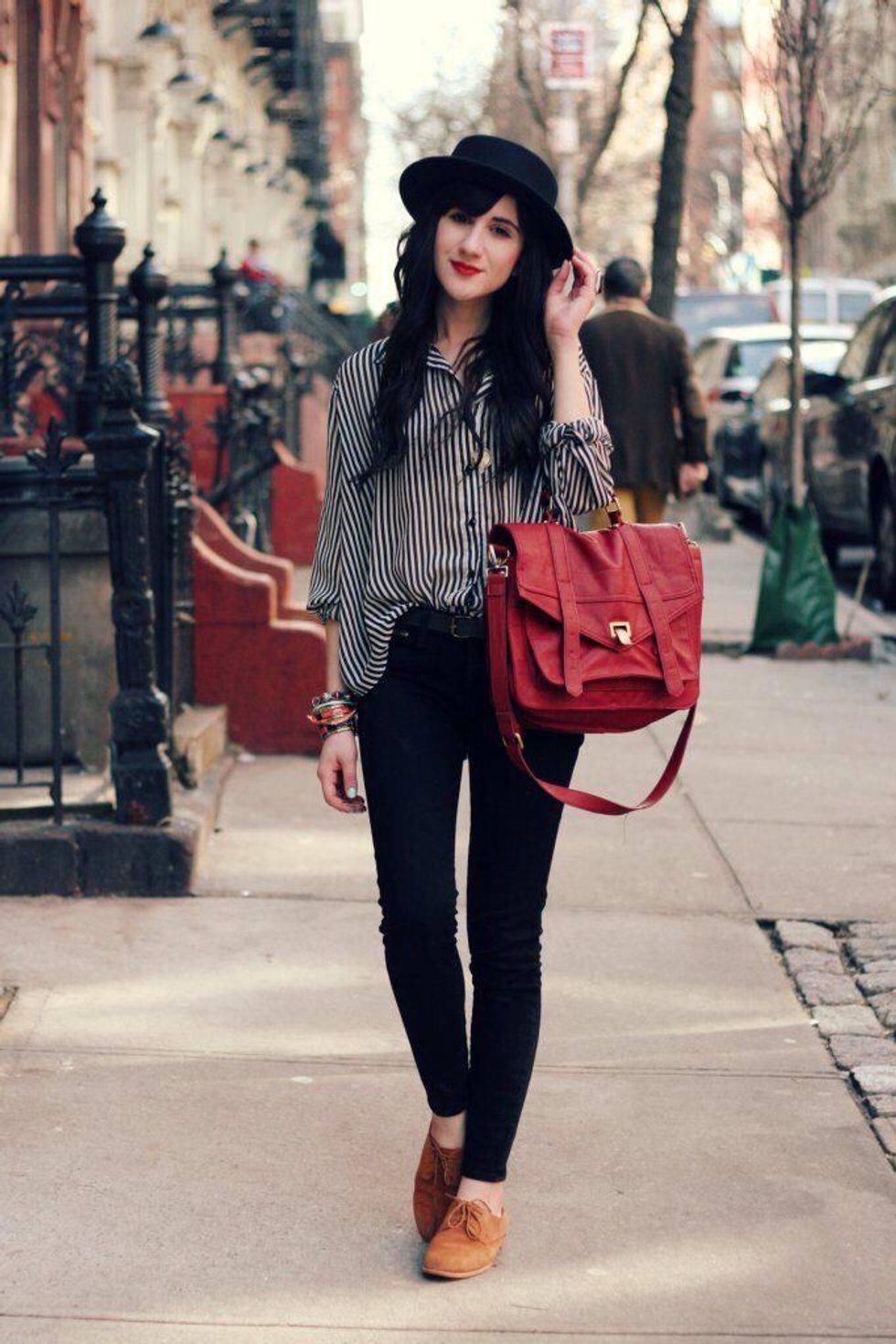 Brown velvet fine short with this cute black hat!!