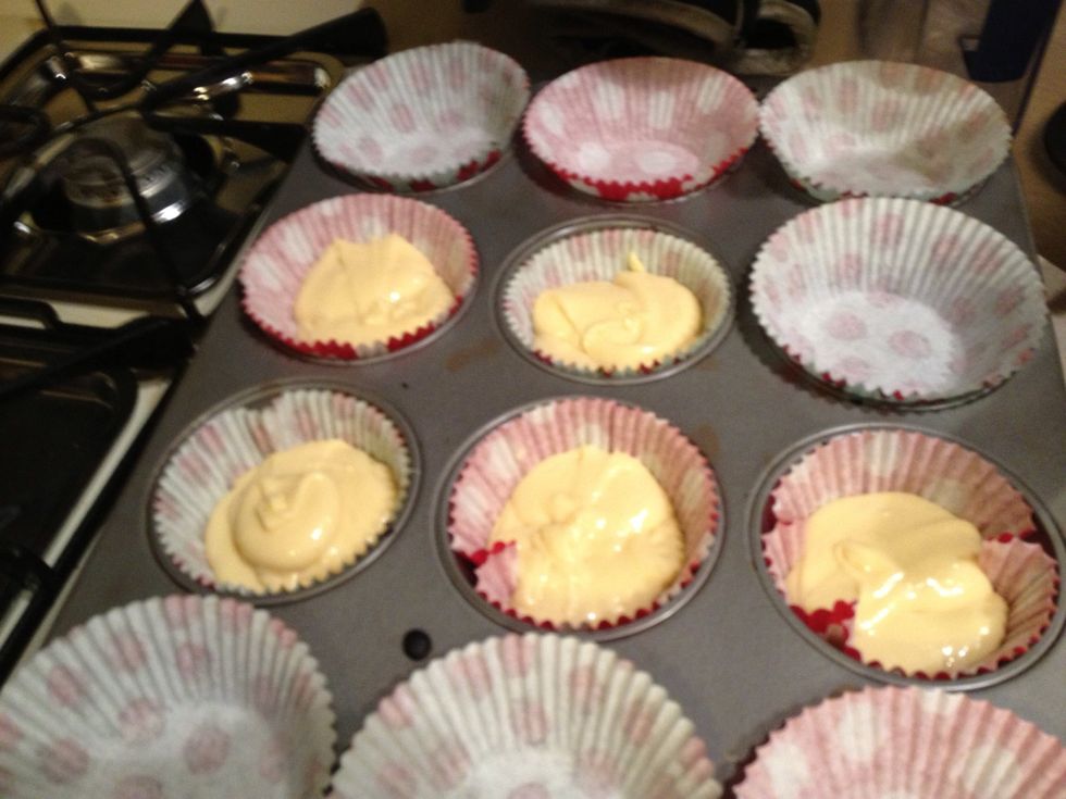 Fill cupcake linings half way with cake mix