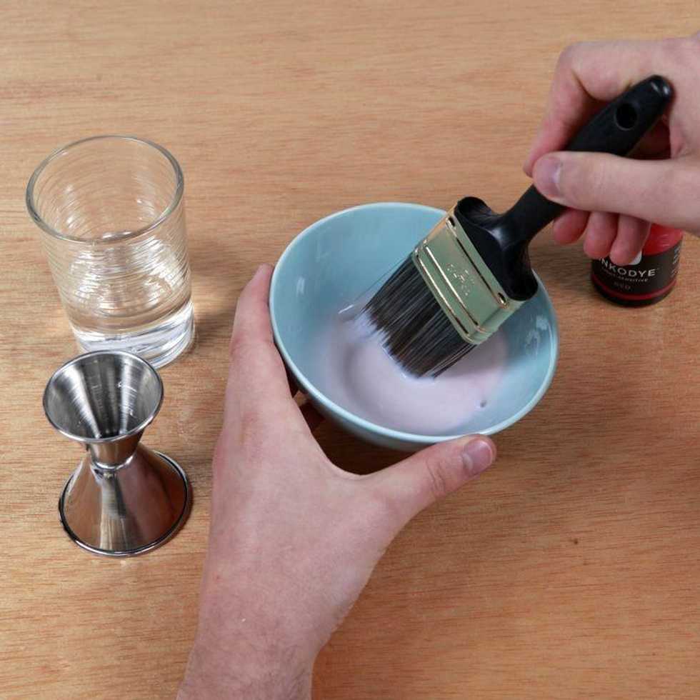 Pour equal parts Inkodye & water into a bowl.