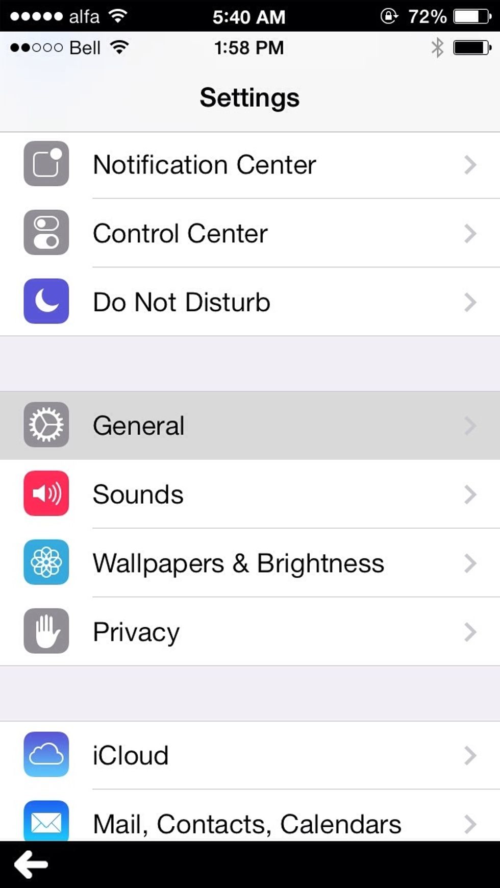 Step Two : Choose General from the Settings menu.