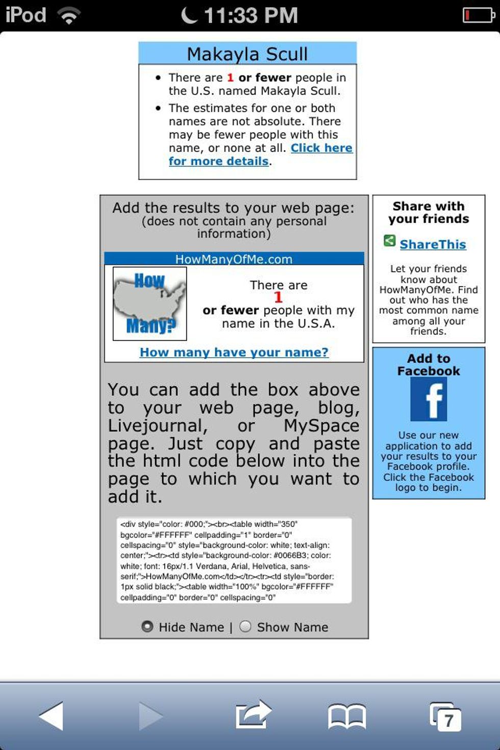 Hope you enjoy! I loved finding this website and I wanted to share it with you guys since it's really cool! It's also good to bring up in a conversation or make a bet to see who's the most unique!