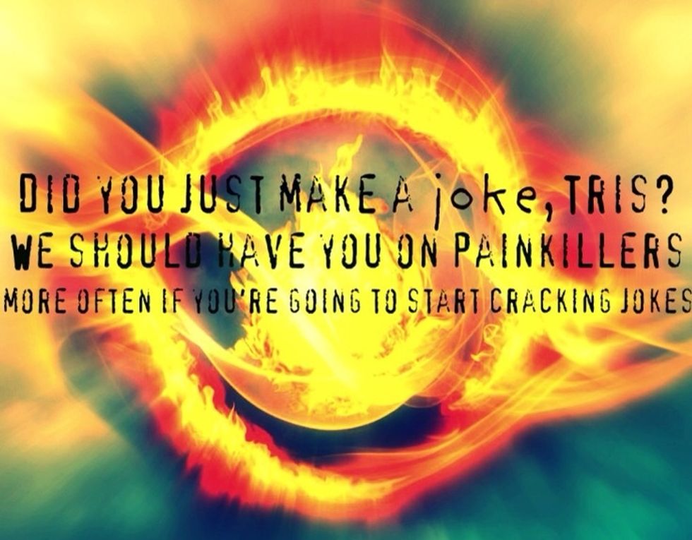 From this slide on, there will be Allegiant spoilers. If you haven't finished the trilogy, don't look through here. Skip to the slide with "74" written on it. In the bottom right corner it says >>>
