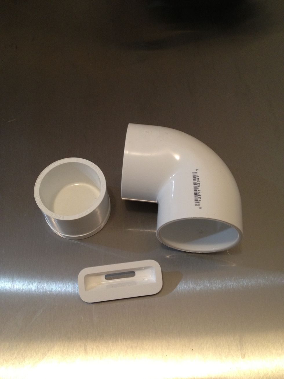 Should look like this. Can use that 1/4" drill bit from the supplies list I mentioned, I put the elbow in a vise and used a jigsaw.