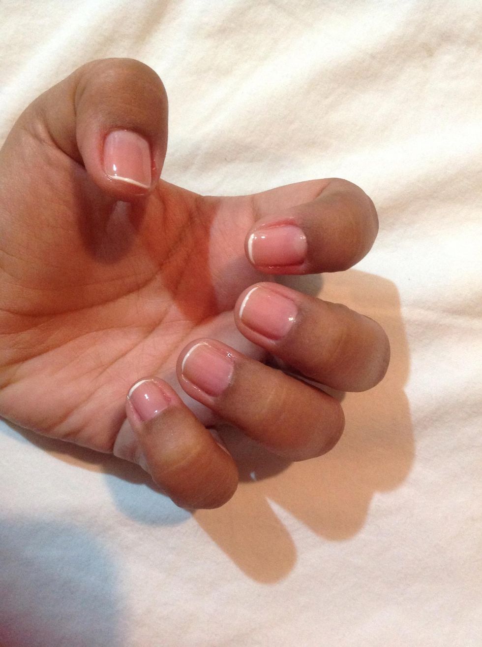 So I just gave my self a mani... I have tried so many times to make a. French manicure, and failed 😭😭 But as you can see today was not so bad...