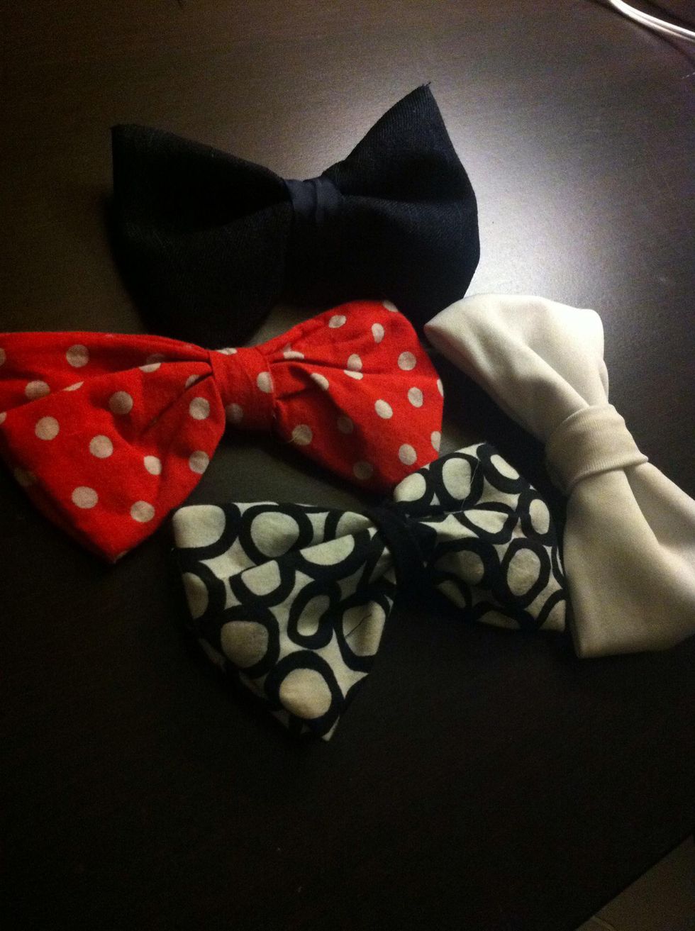 Some of the many bows I've made in the past. I've only been using recycled material from unwanted clothes :)