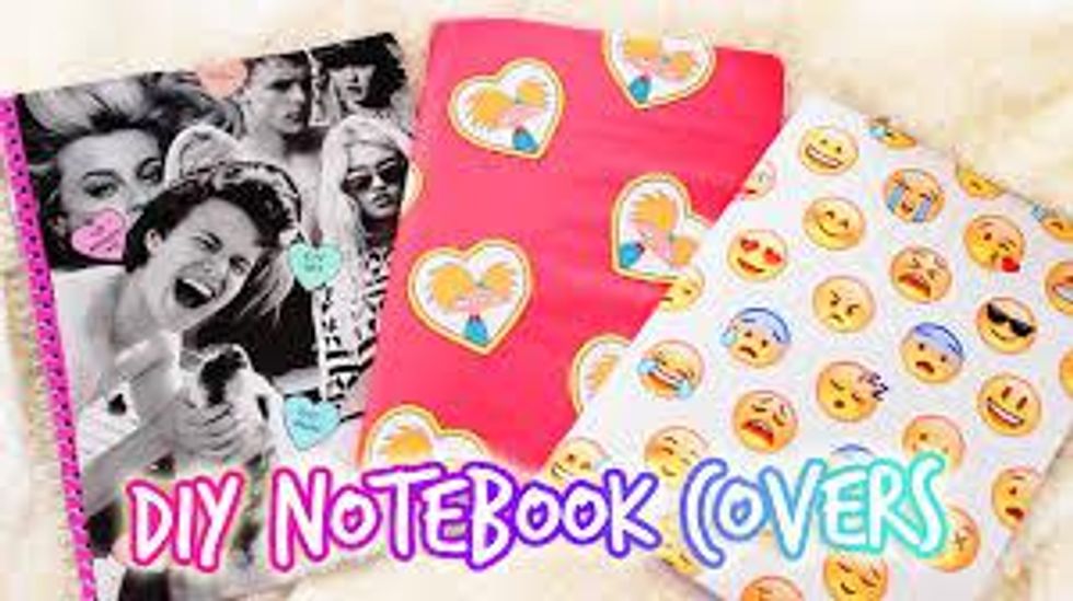 Then put the paper on the front and back cover of notebook. And straighten it out so it doesn't get all wrinkly. In the inside fold the extra pieces of papers inside and tape it down.