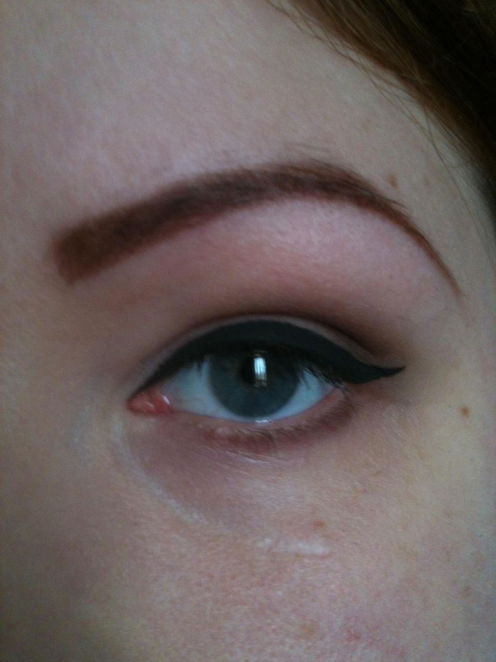 At the inner corner of your eye draw the top of your line, then follow it along in the middle and join it to the flick. You can do that in one or two parts.