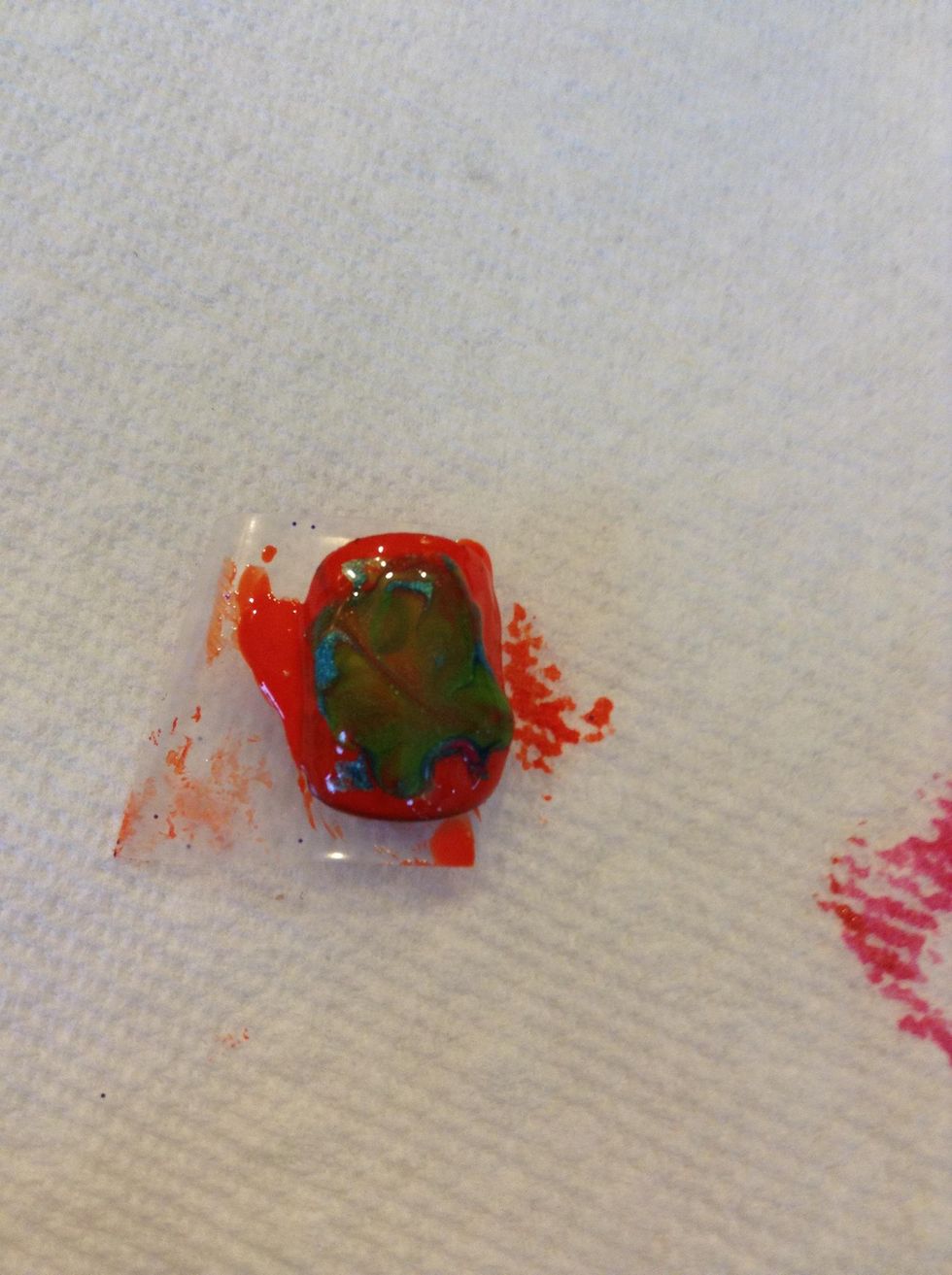 I will be using a false nail because I bit mine. :(Apply top coat. I will paint over the design.Red.Stick toothpicks in the remaining polishes.Go crazy(not really lol)!!Voila!