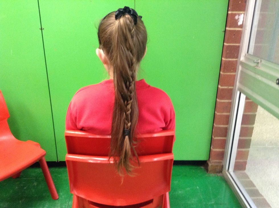 Then you tie the plait up with a lackey band once you finished, and this is what your should look like.
