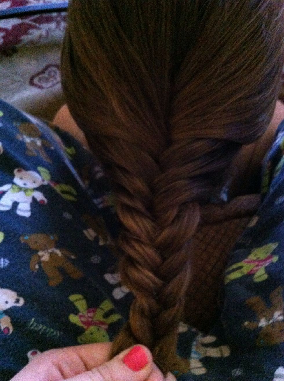 You start with two pieces of hair like a regular fishtail but its on the crown of your head!!!