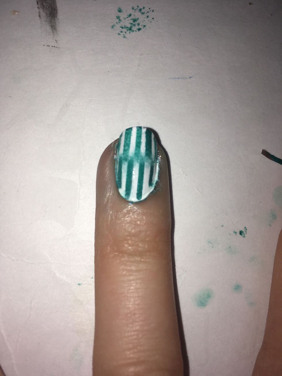 Using strips of tape, stick them on to make straight vertical lines on your nails, it's harder than it looks to get the lines straight!