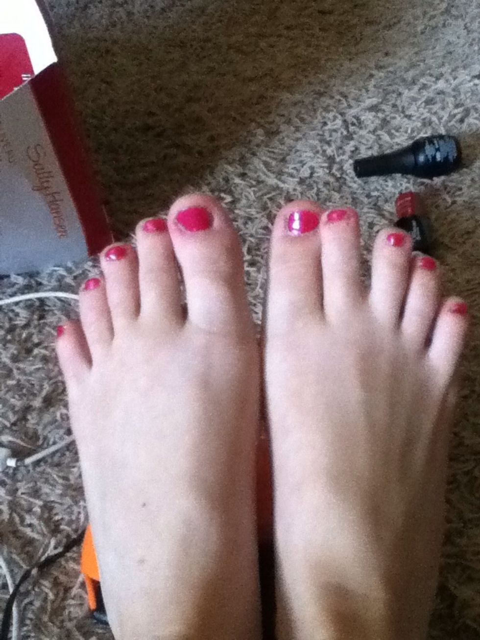 Set one foot under the lamp at a time for 30 seconds (: if painting your finger nails, do 4 fingers, thumbs, then your other four fingers(:
