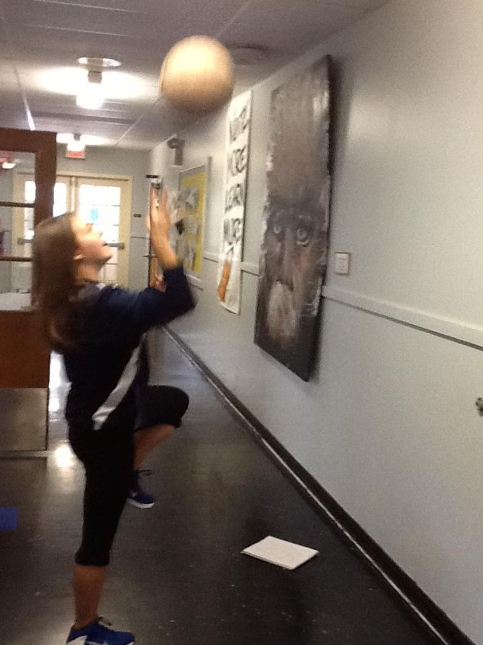 Start off with practicing your form in one place. As you can see, I'm lifting my right leg with the ball in my right hand