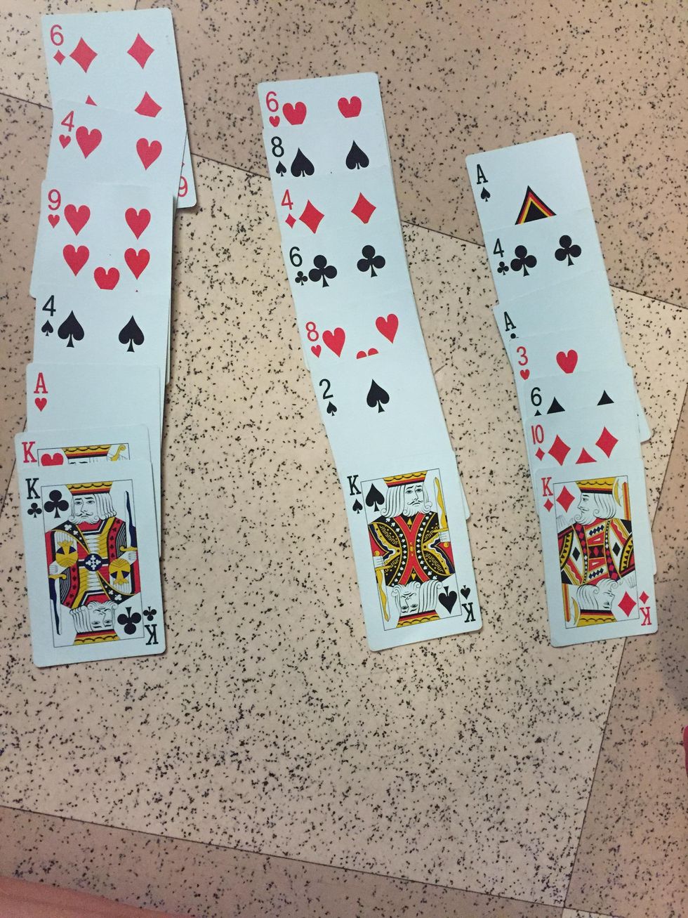 Lay the cards out again with 7 cards in each of the 3 columns but make sure you go across placing one card in each column at a time.