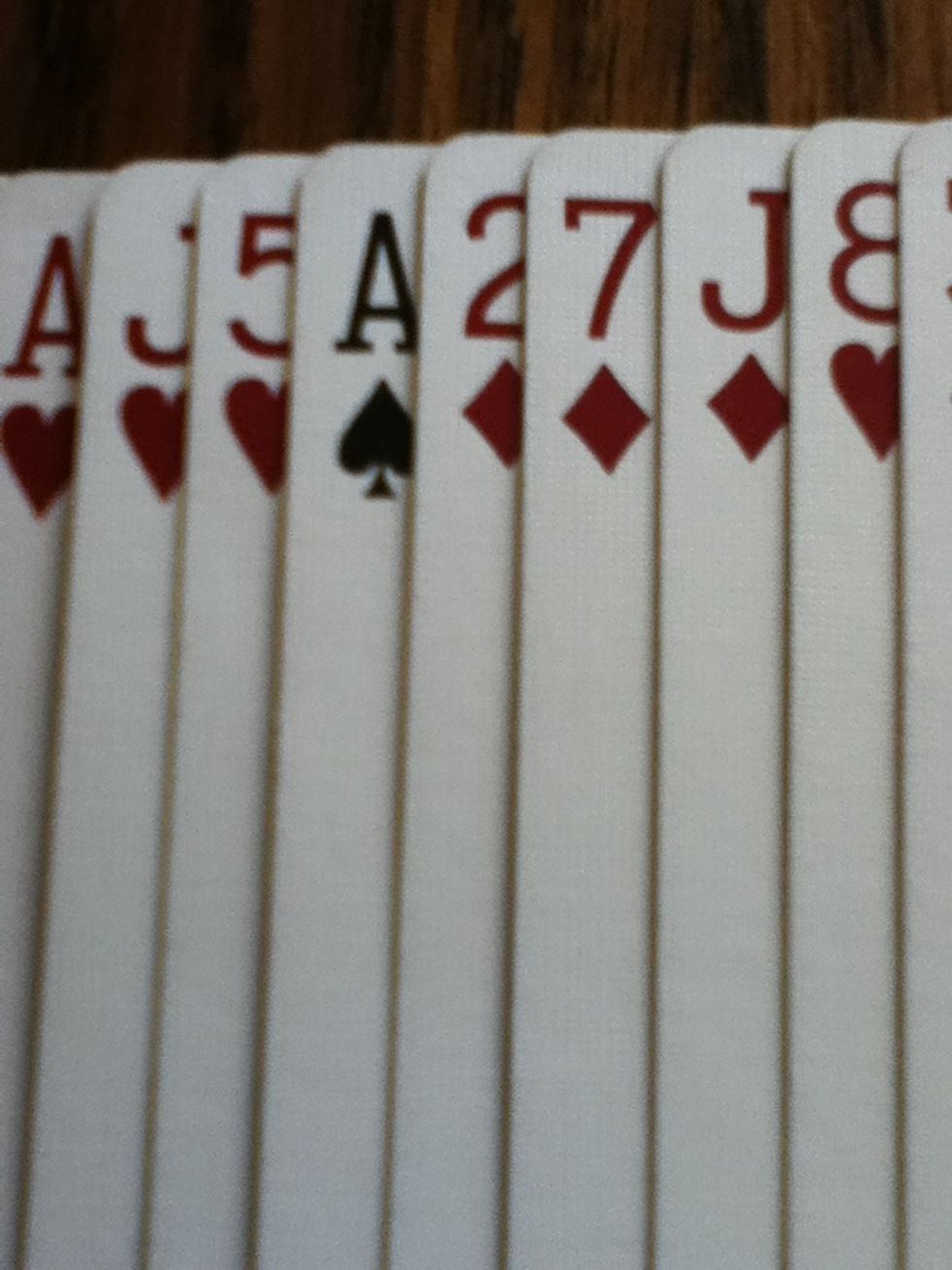 This is the set up; you take all the red put it It in one pile and the blacks in a different pile.